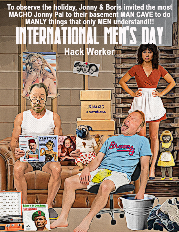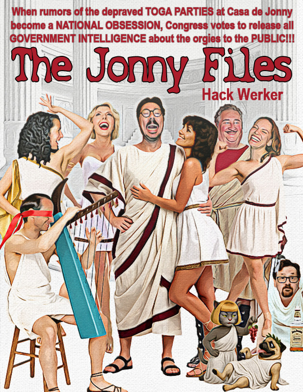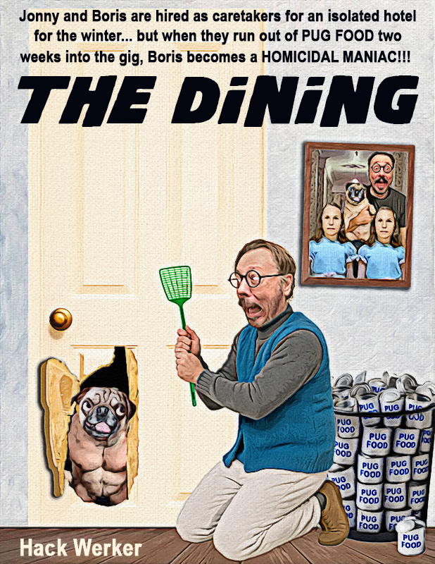 This novel was based on a true story when Hack was sleeping on Jonny and Boris’ couch, only to be awakened from a resounding crash that came from their bedroom. He went to check it out to find them arguing about whether Boris had fallen to the floor after he jumped out of Jonny’s hands when he was trying to help him down so he could pee, or whether Jonny has pushed him. The incident was forgotten the next day, save for this manuscript that Hack had cranked out after the pair went back to sleep.