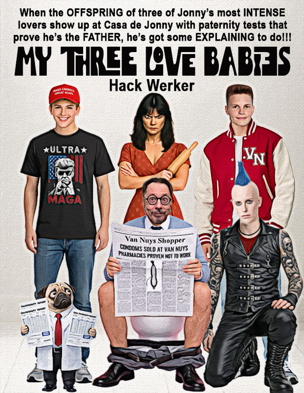 Hack intended to continue his series of novels inspired by 1960s TV sitcoms with this tribute to Petticoat Junction, a rural comedy best remembered for its opening sequence showing three smokin’ hot sisters provocatively bathing in a water tower over their mother’s hotel. Unfortunately, the story was derailed because the actor who played the character of Uncle Joe in the show bore an uncanny resemblance to Hack’s abusive father, so it devolved into a memory piece about how every time Hack started making out with a woman during his teenage years, his father inevitably appeared and tried to make it a three-way.