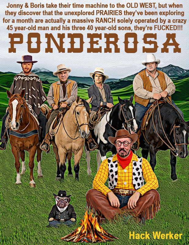 “I’m Ben Cartwright and these are my sons Hoss, Joseph and Adam, although Adam will be leaving us soon because he’s a Drama Desk Award-winning Shakespearean actor and our adventures have gotten too ridiculous for him. This is our ranch the Ponderosa that we operate exclusively by ourselves, with only our cook Hop Sing to ease our loneliness. Who exactly are you strangers?”