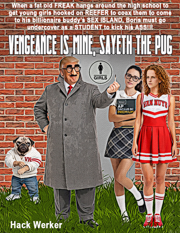 We told Hack that the gimmick would never work in a novel, since it lacked the visual component of a movie, and he gave up on it two-thirds of the way through, devoting the last 75 pages t0 yet another rambling account of his abusive father. But his publisher needed a new Hack Werker book so he just had Hack expand the anal sex scenes in chapters 6 and 14, and it wound up selling well in the Bible Belt.