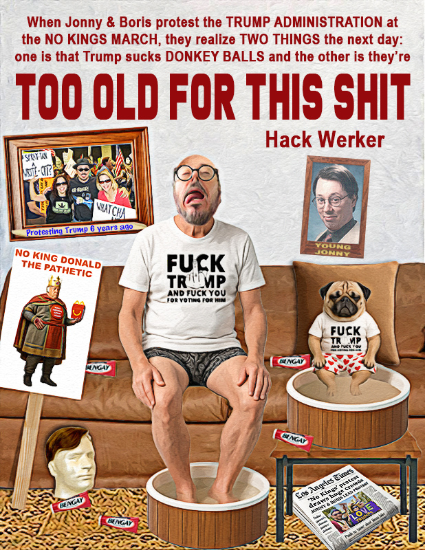 Hack was impressed when he heard that Jonny and Boris marched in the No Kings protest in downtown L.A. But he thought it was hilarious when it was told that were so wiped out from doing it that they could barely move the next day, so he wrote this to stick it to them. It’s pretty funny.