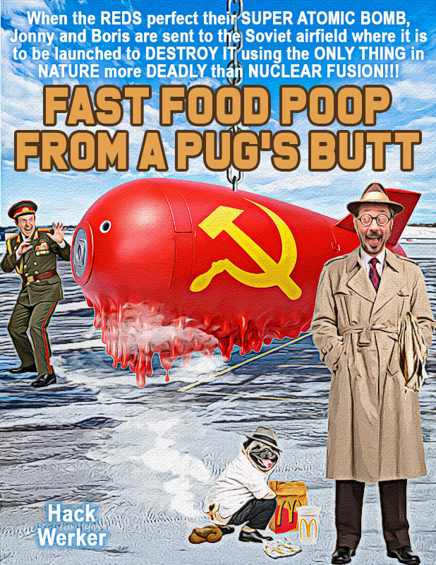 “When that toxic pseudo-meat hits his pug colon,” Jonny continued, “it’ll brew up a stink so powerful it’ll de-atomize anything within range. Steel, concrete, Commie science—gone. Those red-hot eggheads planned for everything except one thing.”