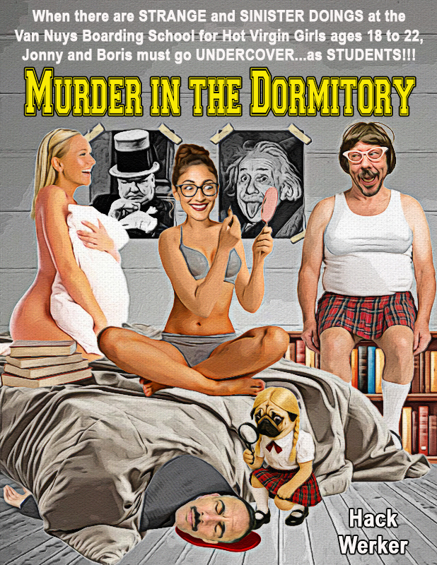 Before Boris could answer, there was a sharp rap on the dorm room door. He and Jonny quickly threw on their wigs and long nightgowns and gave each other the thumbs up that they could safely pass for their female alter egos “Jonna” and “Boreen’” The pug opened the door to find Chloé, the bespectacled brunette who had bonded with Jonna, shivering at the door wrapped in only a small bath towel.