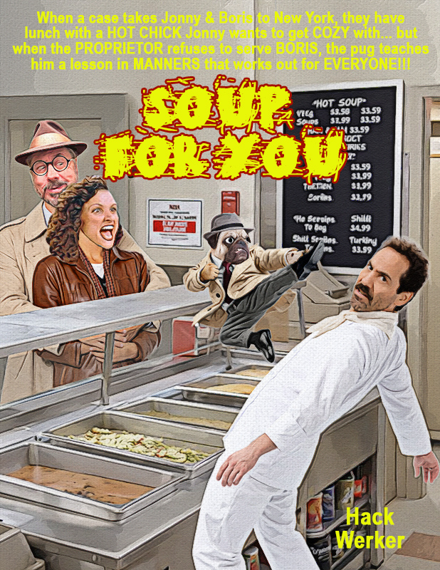 By the time the trio finally made it to the front of the line at the soup place, Jonny felt like he’d made some headway with Elaine. But Boris’ perpetually ravenous belly was focused on only one thing: lunch. The middle eastern proprietor starred down the pug with an intimidating glare that would have overwhelmed anyone else, but Boris’ only master was his stomach. “We’ll have three large mulligatawnies and make it snappy!” The man was unmoved. “Who brought this animal in here? Dogs are not allowed on the premises. Whoever it belongs to, take your mangy creature and get out! No soup for…”